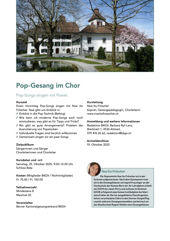 Tages Workshop für SängerInnen und Chorleitende